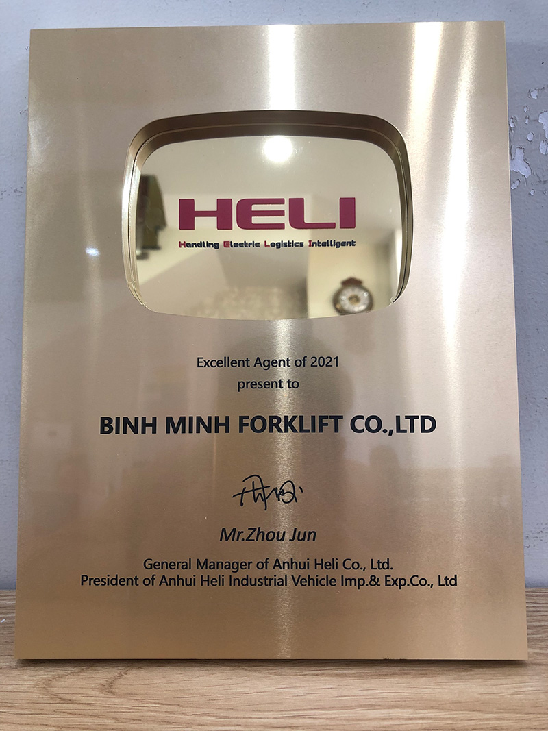 Giấy chứng nhận Công ty xe nâng Bình Minh là đại lý độc quyền cho thương hiệu xe nâng Heli tại Việt Nam: