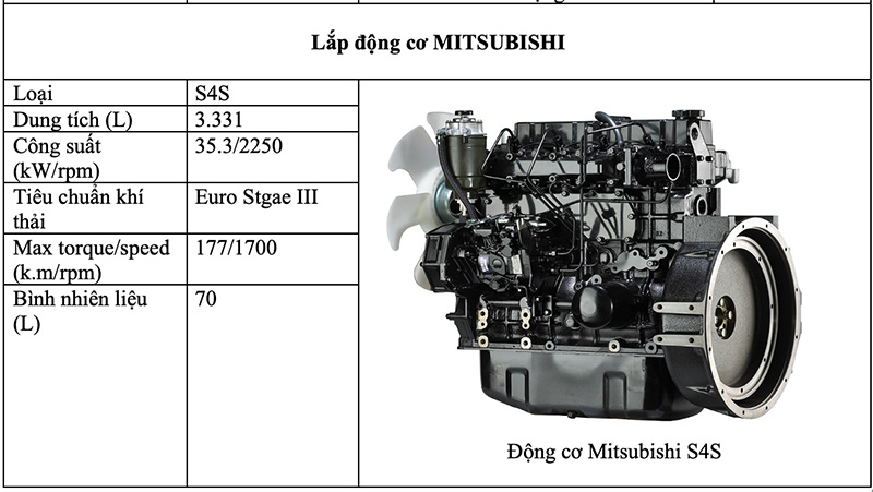 + Hàng hoá cần bóc dỡ vừa phải, khối lượng hàng hoá không quá nhiều trong ngày nên chọn loại động cơ Mitsubishi S4S của Nhật Bản để 1 mặt là đáp ứng tốt cho công việc 1 mặt là tiết kiệm nhiên liệu dầu diesel trên xe nâng 3.5 tấn.