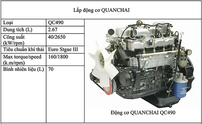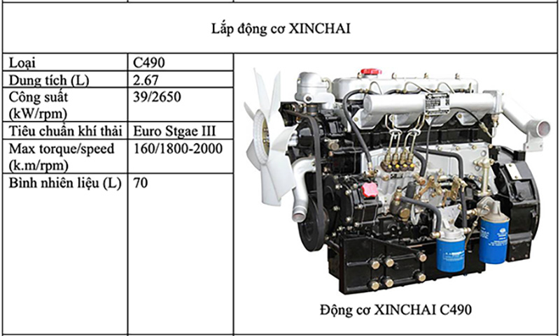 - Ưu điểm: Tiếng nổ êm, sử dụng bền bỉ, ít hỏng vặt hơn động cơ Xinchai C490.