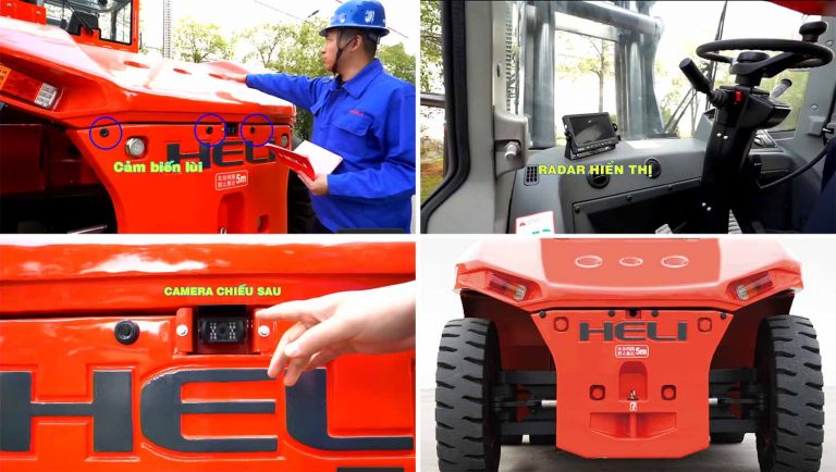 - Đuôi xe nâng hàng 35 tấn – 38 tấn lắp 6 đèn cảm biến, cảnh báo an toàn khỏi nguy cơ va chạm.