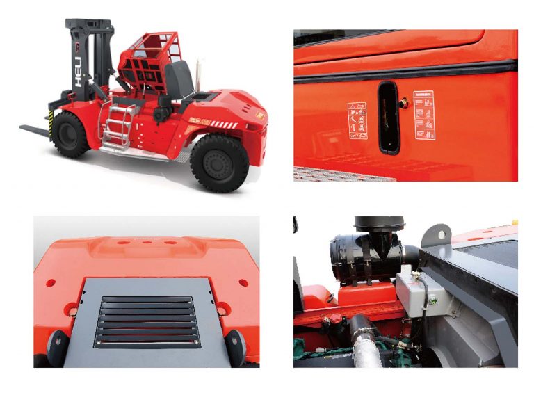 - Khí thải đông cơ Xe nâng hàng 35 tấn – 38 tấn HELI đạt tiêu chuẩn cao thông qua hệ thống SCR và công nghệ làm mát EGR.