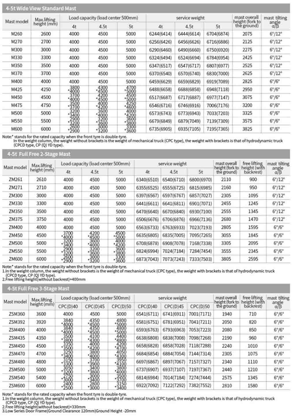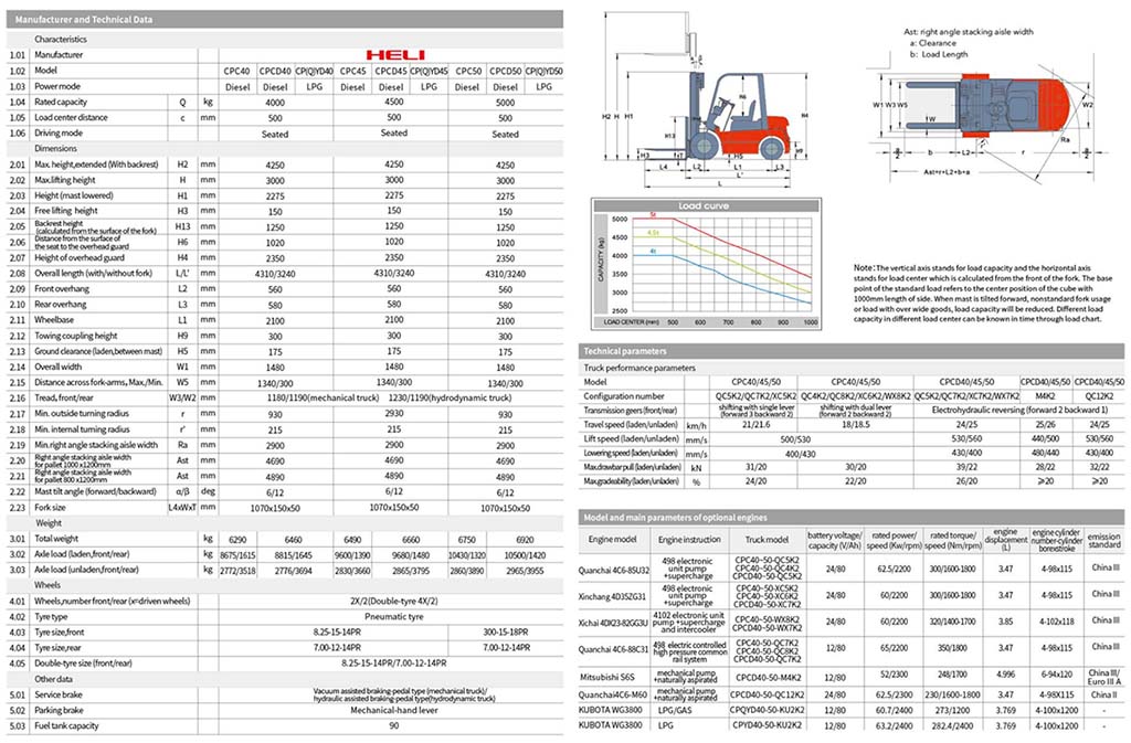 1. Thông Số Kỹ Thuật Chính Của Xe Nâng Dầu 5 Tấn Heli