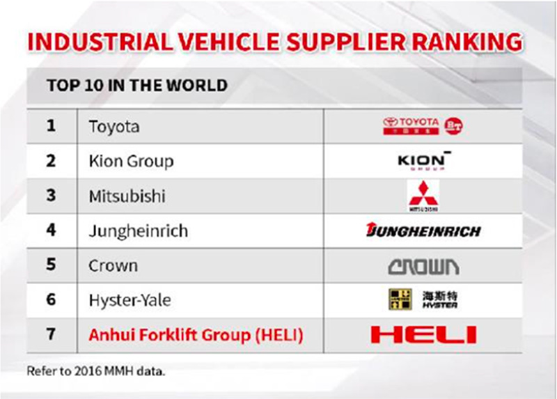 - Đứng thứ 7 trên bảng xếp hạng xe nâng toàn thế giới, chỉ sau Toyota, Kion, Jungheinrich, Mitsubishi, Crown và Hyster-Yale.