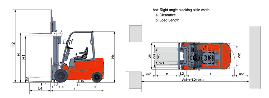 - Thiết kế nhỏ gọn giúp cho xe làm việc được trong các không gian nhà xưởng nhỏ, hẹp.