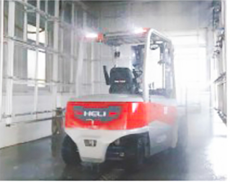 Test xe nâng điện lithium 5 tấn Heli làm việc trong điều kiện trời mưa