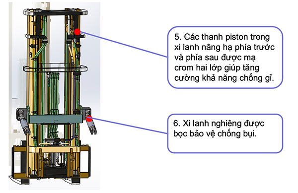 + Độ tin cậy được cải thiện đáng kể: trục lái đúc; nắp sau đối trọng dày hơn; bàn đạp bước lên được nâng cấp thành một bộ phận kim loại giúp chống chịu tốt hơn trong kho lạnh.