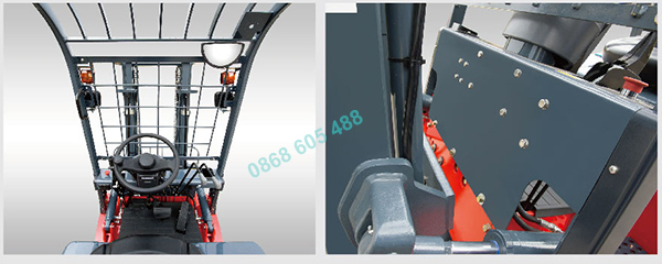 + Khung cabin phía sau xe nâng điện kho lạnh có gắn còi lùi báo hiệu.