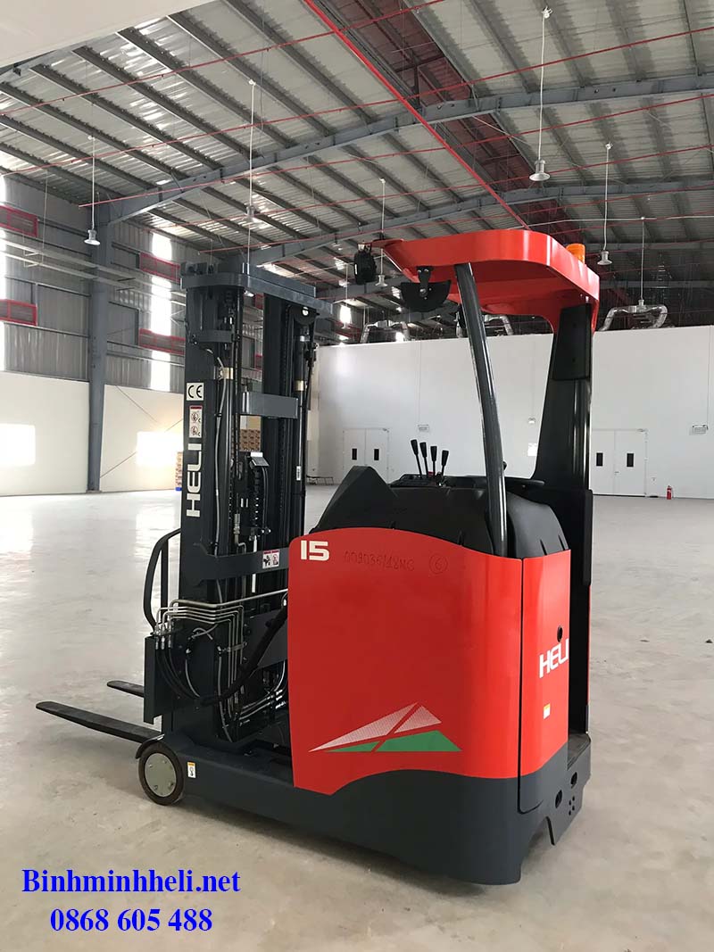 Xe nâng Reach Truck 1.5-1.8 Tấn – Xe nâng điện đứng lái HELI CQD15-18 được thiết kế dành riêng cho những nhà kho có set up kho kệ (kệ Double Deep, kệ Drive In, kệ Khuôn, Kệ Push Back) có lối đi nhỏ, lối di chuyển hẹp nhưng chiều cao nâng hàng lớn. Xe được thiết kế với kích thước nhỏ gọn, motor di chuyển công suất lớn, bơm thủy lực có hiệu suất cao. Là dòng xe sử dụng nhiên liệu sạch, không phát thải ra môi trường và dễ dàng bảo trì bảo dưỡng.