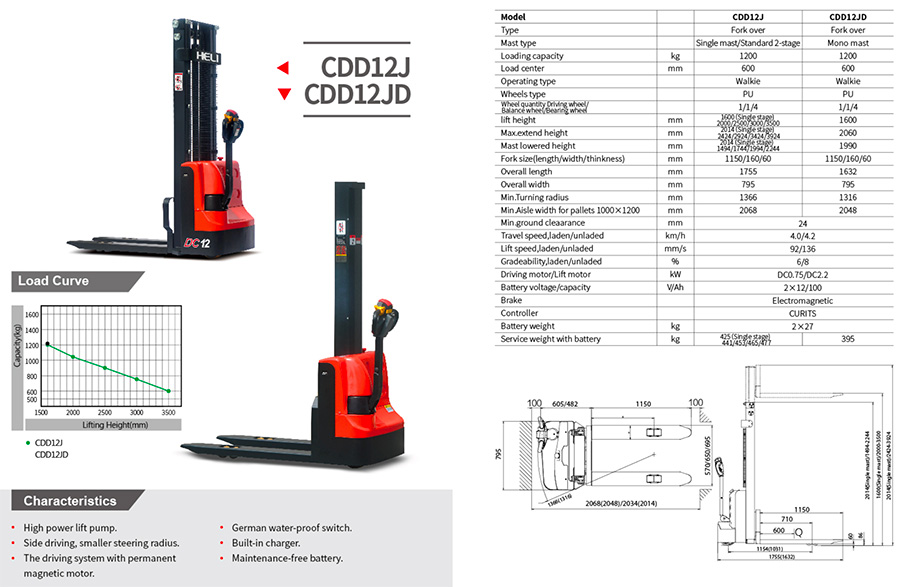 Chi tiết catalogues của xe nâng điện tay cao 1.2 tấn Heli