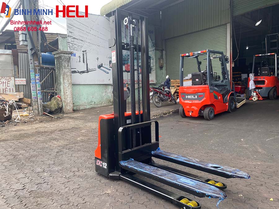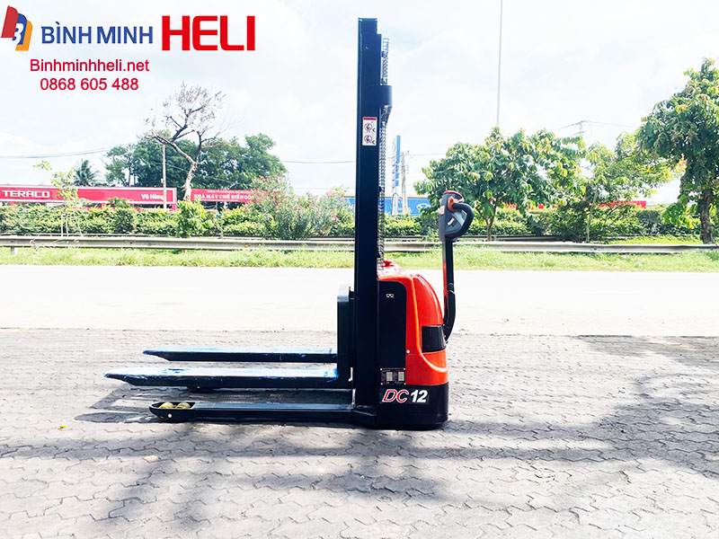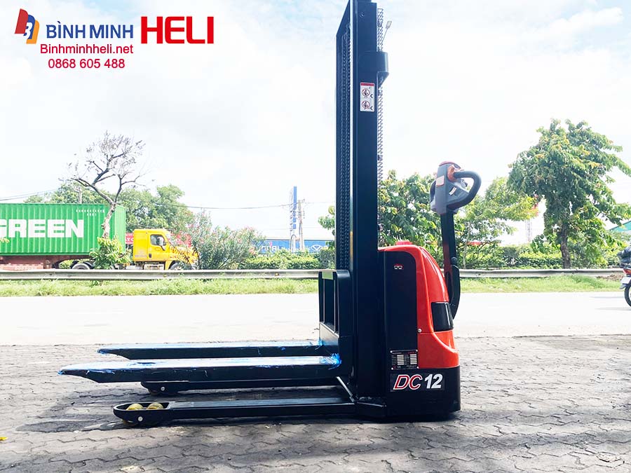 Xe nâng tay điện cao 1.2 tấn Heli hay còn gọi là xe nâng điện đứng lái có model là CDD12J được công ty Bình Minh nhập khẩu và phân phối chính hãng tại Việt Nam. Xe nâng tay điện cao được thiết kế làm việc trong các kho có nền bằng phẳng, lối đi hẹp, hàng hoá nặng không quá 1200kg.