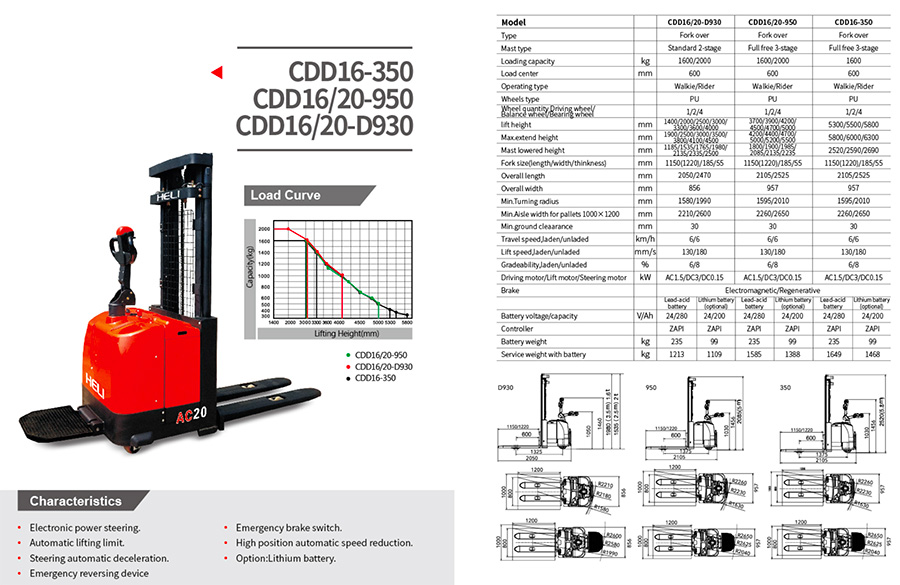 Catalogues xe nâng tay điện cao 2 tấn Heli CDD20-D930