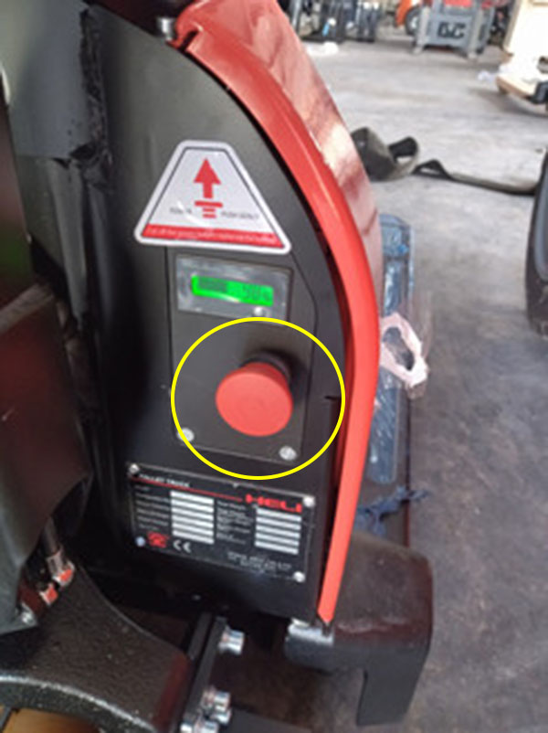 a) Xe nâng CBD20J-LI3 đã chuyển nút nguồn khẩn cấp về phía sau