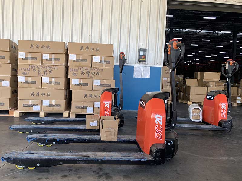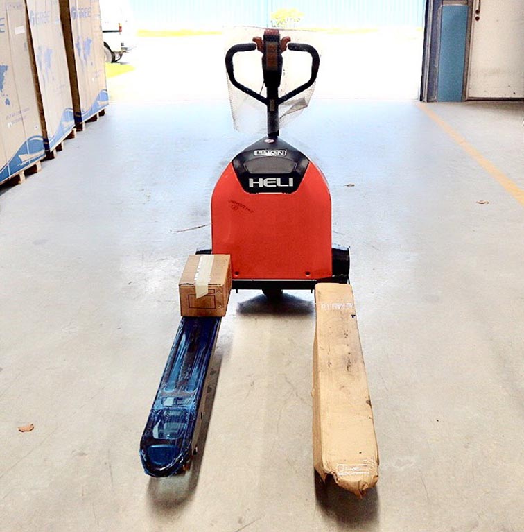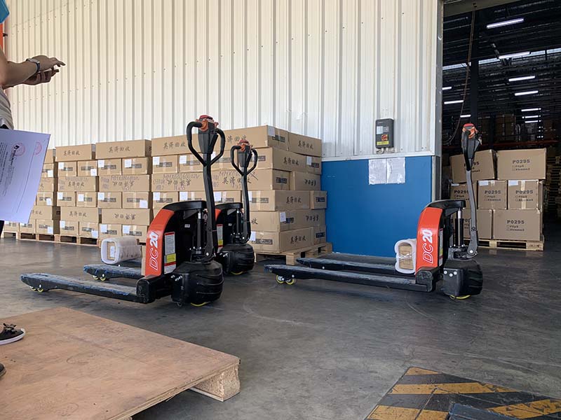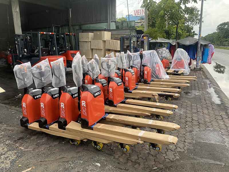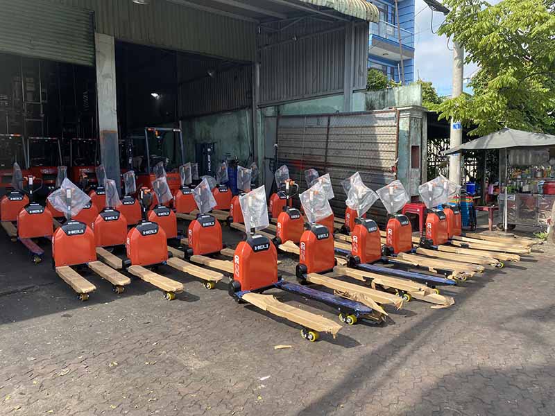 b) Những hình ảnh xe nâng tay điện Lithium tại kho hàng