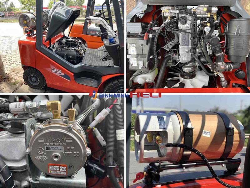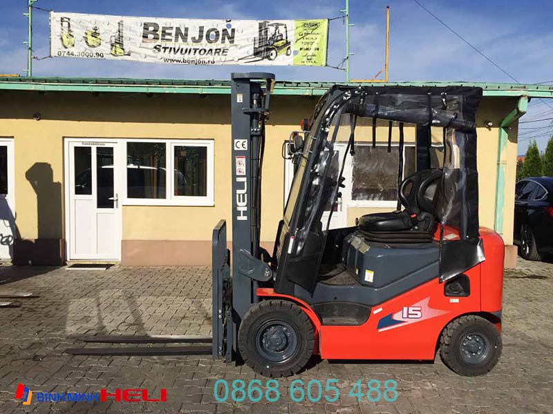 - Xe nâng xăng gas 1.5 tấn Heli ứng dụng công nghệ của Nhật Bản và được sản xuất lắp ráp tại Tỉnh Anhui, Trung Quốc.