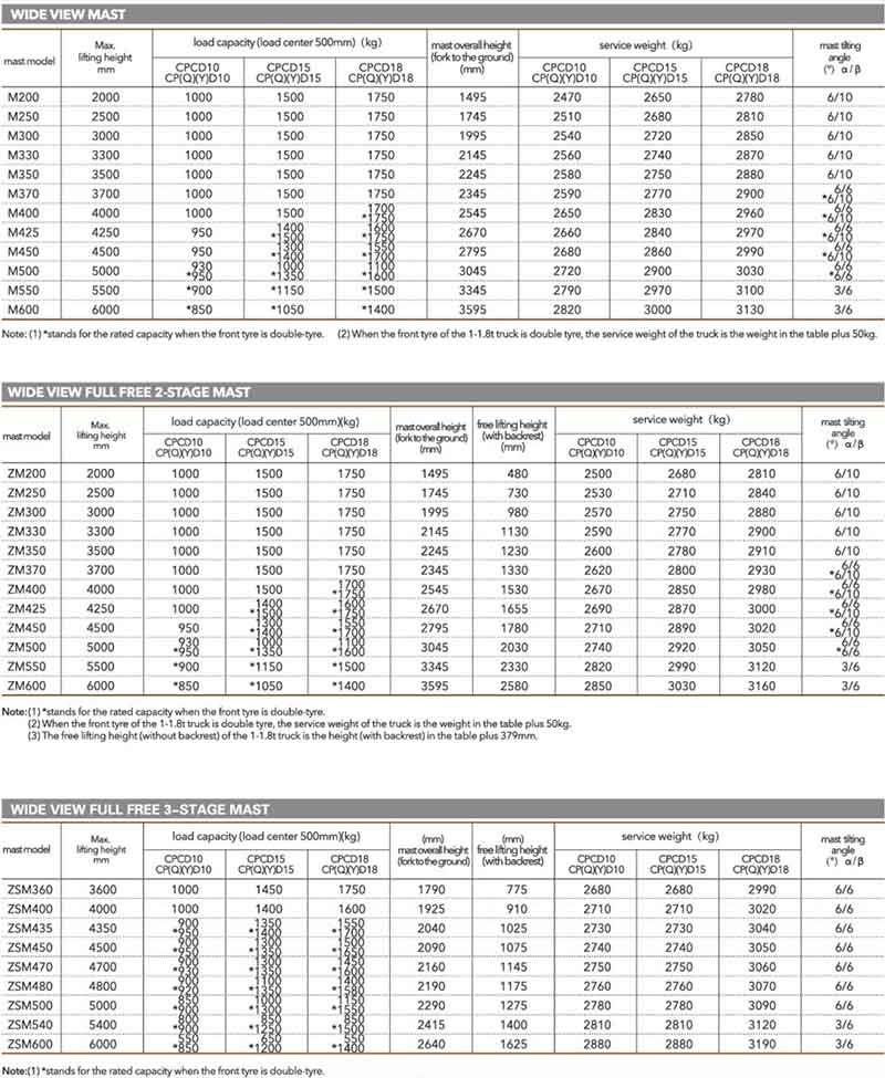 3. Thông Số Kỹ Thuật Và Catalugues Của Xe Nâng Xâng Gas 1.5 Tấn